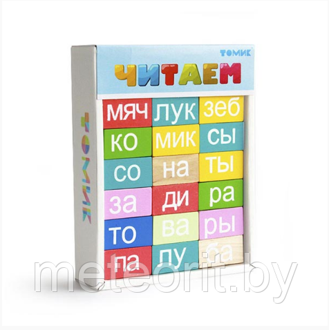 Развивающий набор предназначен для обучения чтению в игровой форме. Состоит из 16 двусторонних карточек, на каждой стороне которых изображена картинка и слово, разложенное на слоги и обозначающее это изображение. Ребенку предстоит подобрать к картинкам соответствующие слоги, из которых состоят слова. Также можно придумымвать и составлять свои слова и предложения.