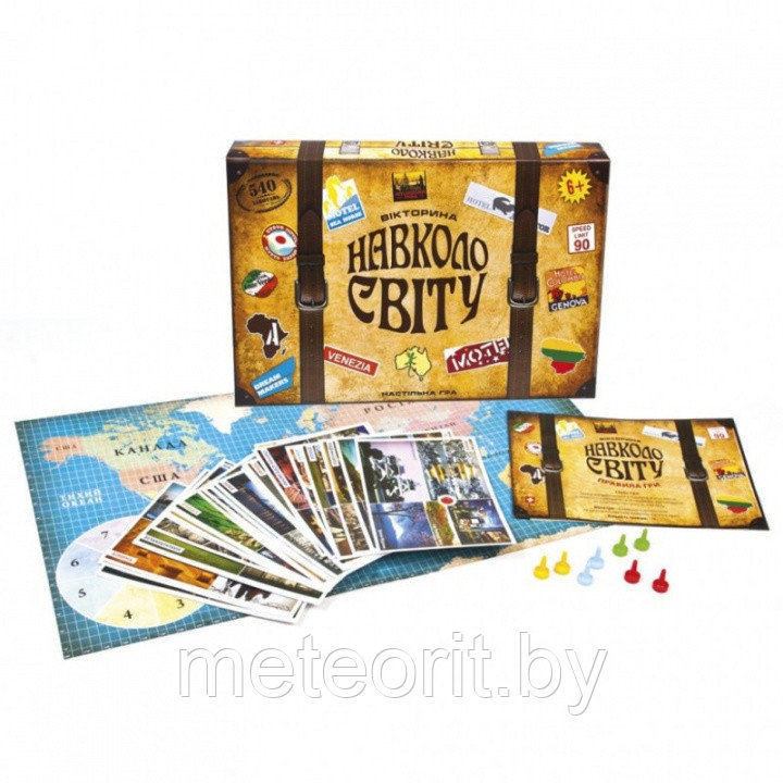 Игра «Вокруг света» создана специально для любознательных! Для тех, кто любит путешествия, новые открытия и впечатления. Благодаря ей вы сможете побывать в 60 странах мира и узнать о них много нового и неожиданного. А чтобы путешествие было ещё интереснее, игрокам предлагается посоревноваться со своими единомышленниками. Игрокам предстоит проверить свою эрудицию, отвечая на множество вопросов по истории, культуре и традициям разных стран.