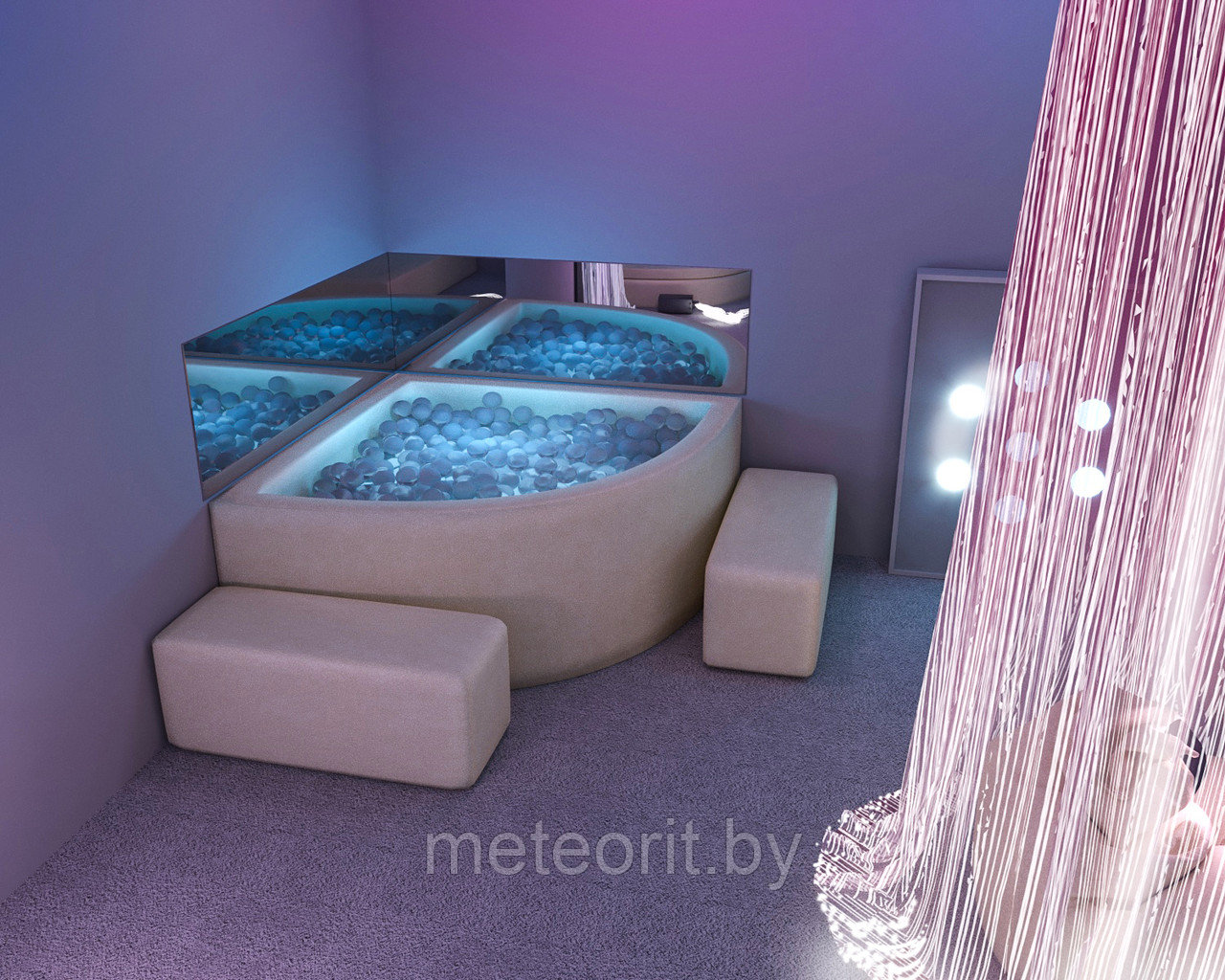 Для данного интерактивного бассейна используются бесцветные шары, которые беспрепятственно пропускают свет заданного цвета.