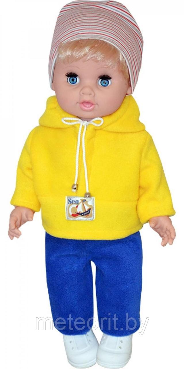 Сашенька – малыш-пупс с правильными пропорциями тела и милым личиком. У него вставные не закрывающиеся глаза с густыми ресничками. Кукла изготовлено из пластиката ПВХ и полиэтилена. Ручки и ножки могут вращаться. Парик –прошивной. Кукла может сидеть. Сашенька озвучен приятным детским голосом, он произносит: "Мама. Папа. Хочу гулять! Хочу кушать!" Сашенька даже умеет смеяться и плакать. В комплект одежды входят: спортивный батник с капюшоном, брючки, шапочка и обувь.