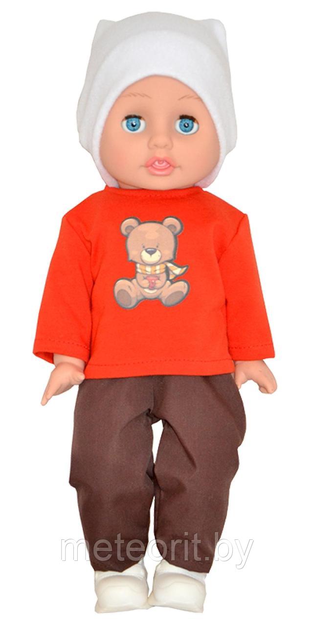 Кукла Максим – малыш-пупс с правильными пропорциями тела и милым лицом. У Максима вставные закрывающиеся глаза, его можно укладывать спать. Кукла изготовлено из пластиката ПВХ и полиэтилена. Ручки и ножки могут вращаться. Парик –рельефный. Максима можно купать. Малыш может сидеть. Максим озвучен приятным детским голосом, он произносит: "Мама. Папа. Хочу гулять! Хочу кушать!" Он даже умеет смеяться и плакать.