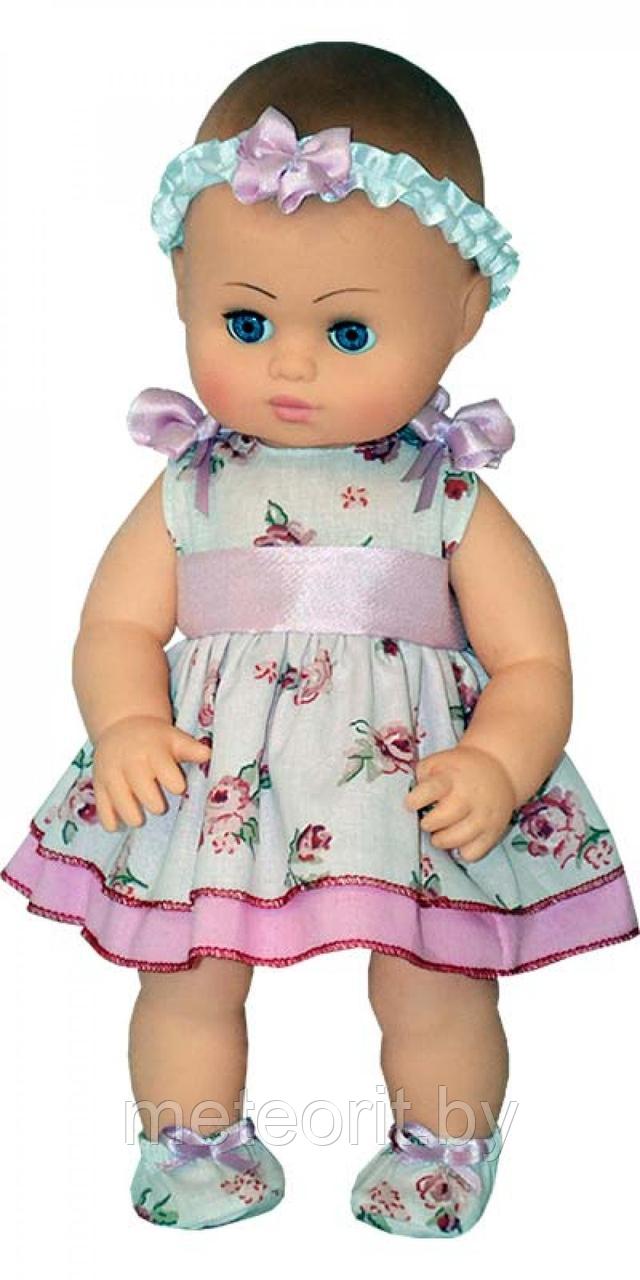 Леночка – малышка-пупс с правильными пропорциями тела и милым личиком. У Леночки вставные закрывающиеся глаза с густыми ресницами, её можно укладывать спать. Кукла изготовлена из пластиката ПВХ. Ручки и ножки могут вращаться. Парик –рельефный. Леночку можно купать. Кукла может сидеть. Туловище куклы имеет признак пола (девочка). Леночка озвучена приятным детским голосом, она произносит: "Мама. Папа. Хочу гулять! Хочу кушать!" Она даже умеет смеяться и плакать. В комплект одежды входят: кофта, юбка-шорты.