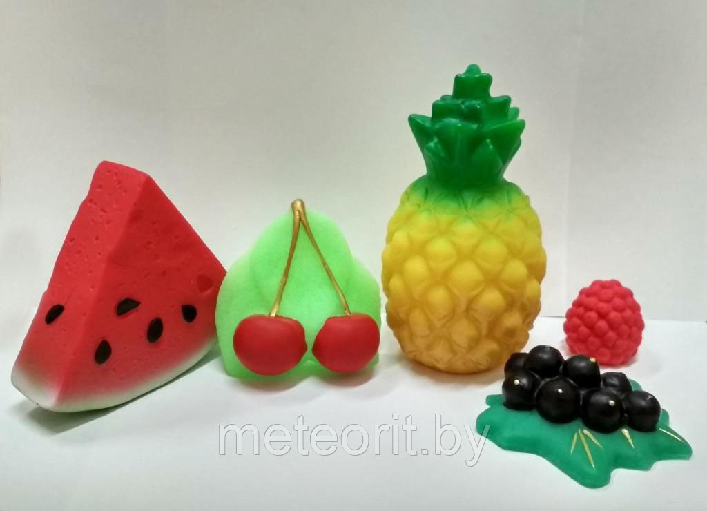 В набор входят следующие ягоды: арбуз, вишня, ананас, малина, смородина.