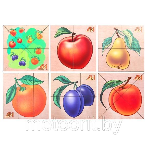 В комплект входит 6 разрезных картинок, изображающих овощи, размером 10 см на 10 см., карточки подказки с изображением этих овощей.