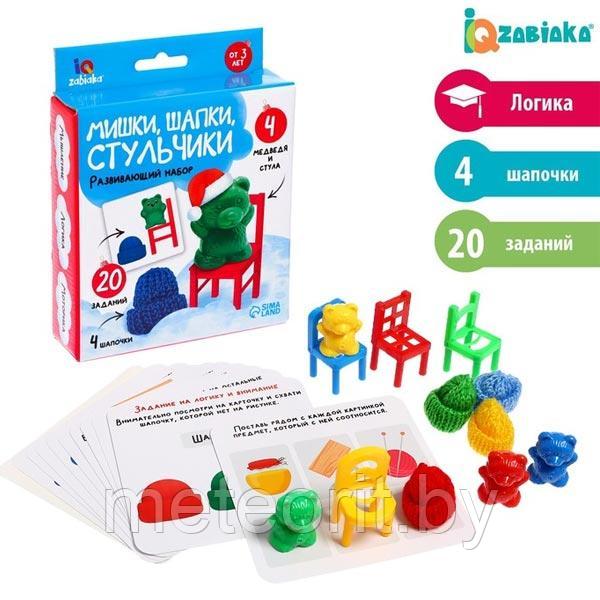 С развивающим набором "Мишки, шапки, стульчики" малыш потренирует навык ориентирования в пространстве, зрительное восприятие, логическое мышление, память и мелкую моторику рук.
