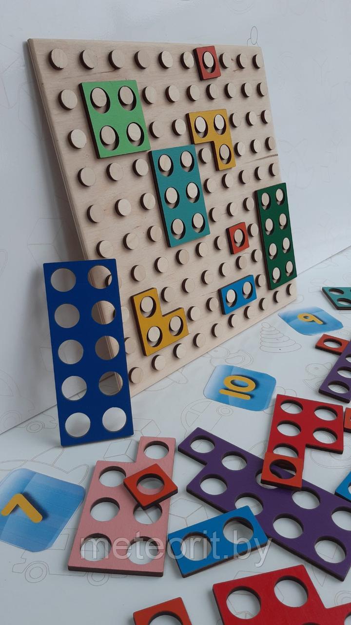 Аналог Нумикон – это мультисенсорная математическая программа и набор наглядного материала, разработанные в Англии в 90-е годы для детей с ограниченными возможностями и детей, испытывающих трудности при изучении математики.Методика основана на задействовании сильных сторон детей – способность обучаться на практике, наблюдать, распознавать паттерны, то есть запоминать, а затем узнавать стандартизованные образцы или шаблоны при следующих предъявлениях. Этот метод можно использовать для изучения состава числа, сложения, вычитания, умножения и деления. С помощью деталей пособия можно наглядно показать основные свойства натуральных чисел: каждое следующее число на один больше, чем предыдущее, видна разница между четными и нечетными числами. Аналог конструктора Нумикон также успешно применяют при обучении детей школьного возраста. В данном пособии числа от 1 до 10 представлены формами-шаблонами. Каждому числу соответствует шаблон определенной формы и цвета, числа от 1 до 10 представлены деревянными формами-шаблонами разного цвета, благодаря чему числа становятся доступными для зрительного и тактильного восприятия.Работа с данным пособием положительно влияет и на развитие эмоционально-волевой сферы личности: ребенок становится более усидчивым, сосредоточенным, развивается фантазия, мышление, мелкая моторика.Возможности использования данного пособия очень разнообразны.