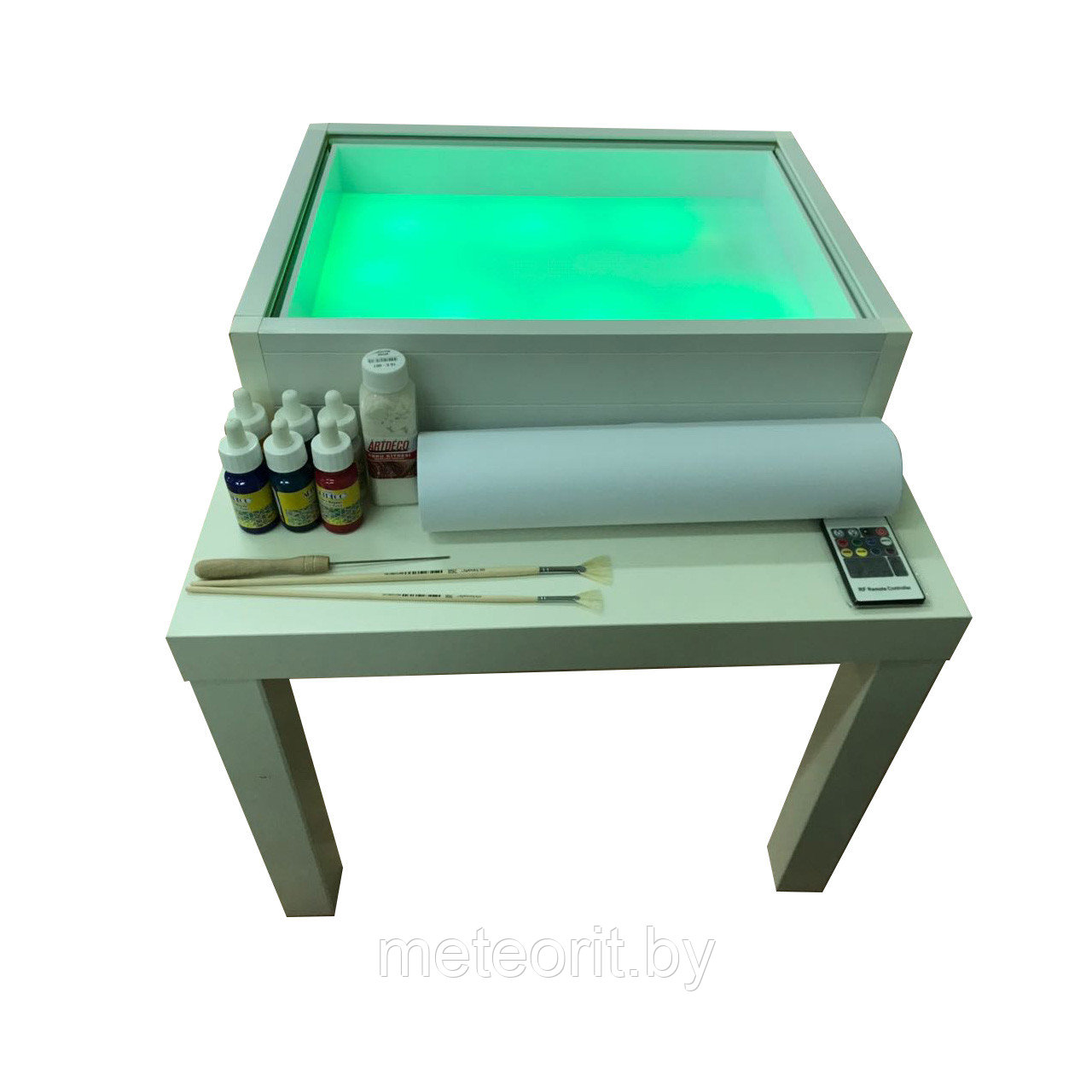 Герметичный планшет для рисования на воде изготовлен из высококачественного, прочного и легкого пластика белого цвета. Необычная техника рисования на интерактивном столе с разноцветной подсветкой, это еще не все! С помощью специализированных красок и инструментов можно создавать потрясающие рисунки, тексты и слова, а затем, переводить их на бумагу (в комплекте) одним движением. Настоящее волшебство! В комплекте: шило, 2 кисти, 6 красок, загуститель на 10,4 л. воды, бумага для сканирования рисунка.