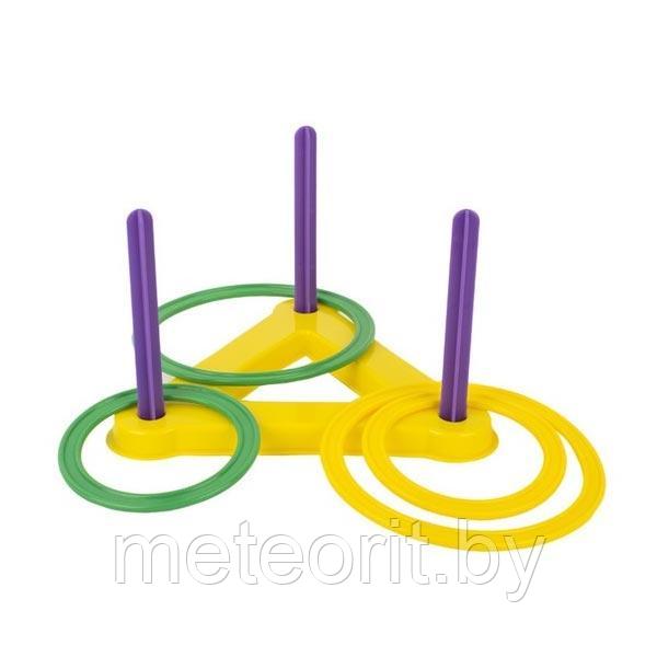 Игра "Кольцеброс" изготовлена из пластмассы. Цель игры - набрасывать кольца на стойку с определенного