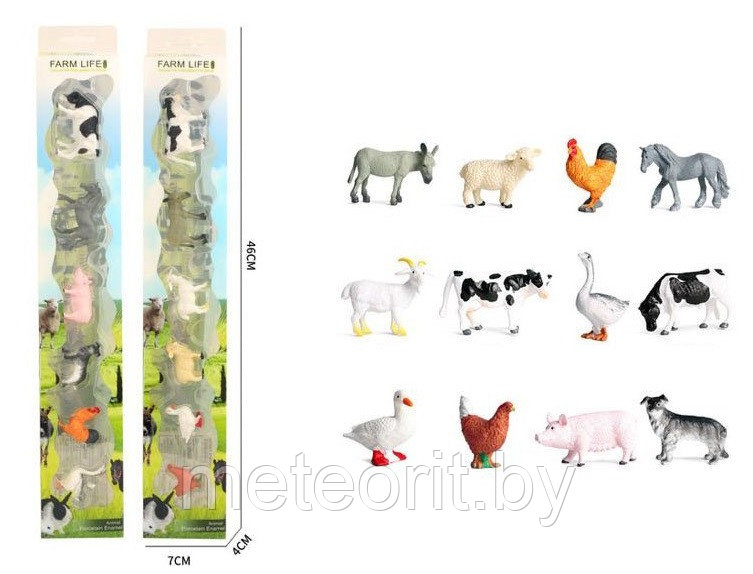 В комплекте: - 6 видов домашних животных. Комплект: лошадь, корова, свинья, собака, петух, гусь.