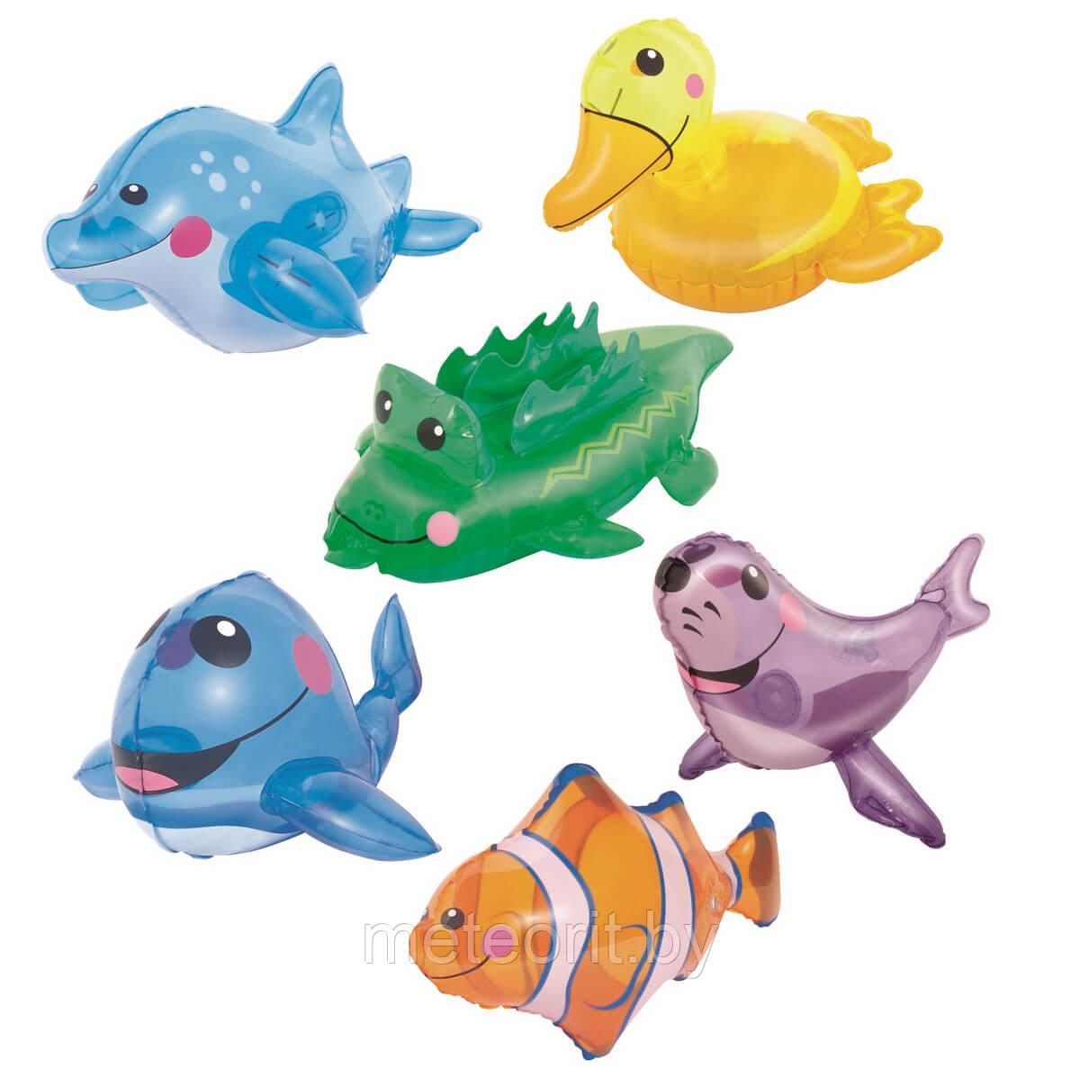 Надувные игрушки помогут ребенку адаптироваться в воде. Игрушки изготовлены из качественной ПВХ-пленки. Производитель предлагает 9 различных игрушек, размер которых 35 сантиметров. Игрушки легкие, яркие и приятные на ощупь, они непременно станут любимцами юного пловца. Время, проведенное в воде с надувными игрушками, принесет ребенку только положительные эмоции. Использование игрушек в бассейне поможет малышу быстрее адаптироваться в водной среде.