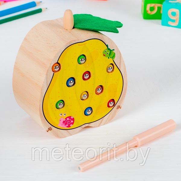 Малышу предстоит поймать всех червячков с помощью магнитной удочки.