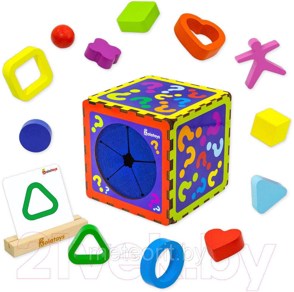 Магический куб Алатойс — это уникальная игрушка, сочетающая в себе элементы головоломок, лото и заданий для детей.Вы можете играть с магическим кубом как с сортером, лото, изучать цвета и формы, а также развивать у малышей мелкую моторику и речь, выполняя задания из карточек.