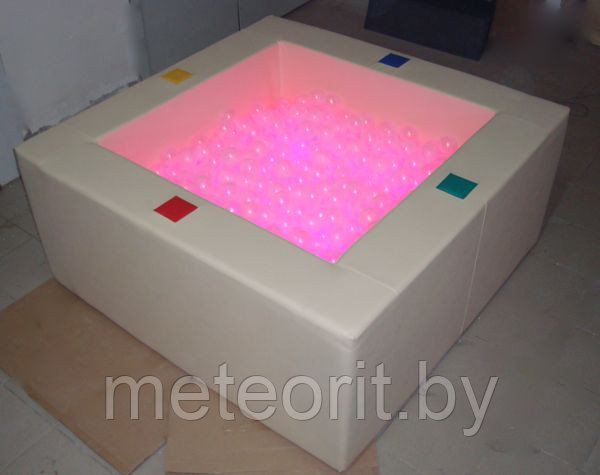 Для данного интерактивного бассейна используются бесцветные шары, которые беспрепятственно пропускают свет заданного цвета.