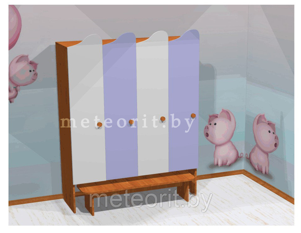 Шкафчик для одежды со скамьёй (4-местный), р-р 1150*396*1532